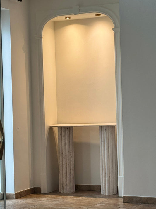 Discover our Travertine Consoles at MERAKI MARBLE.We create each cabinets to bring...