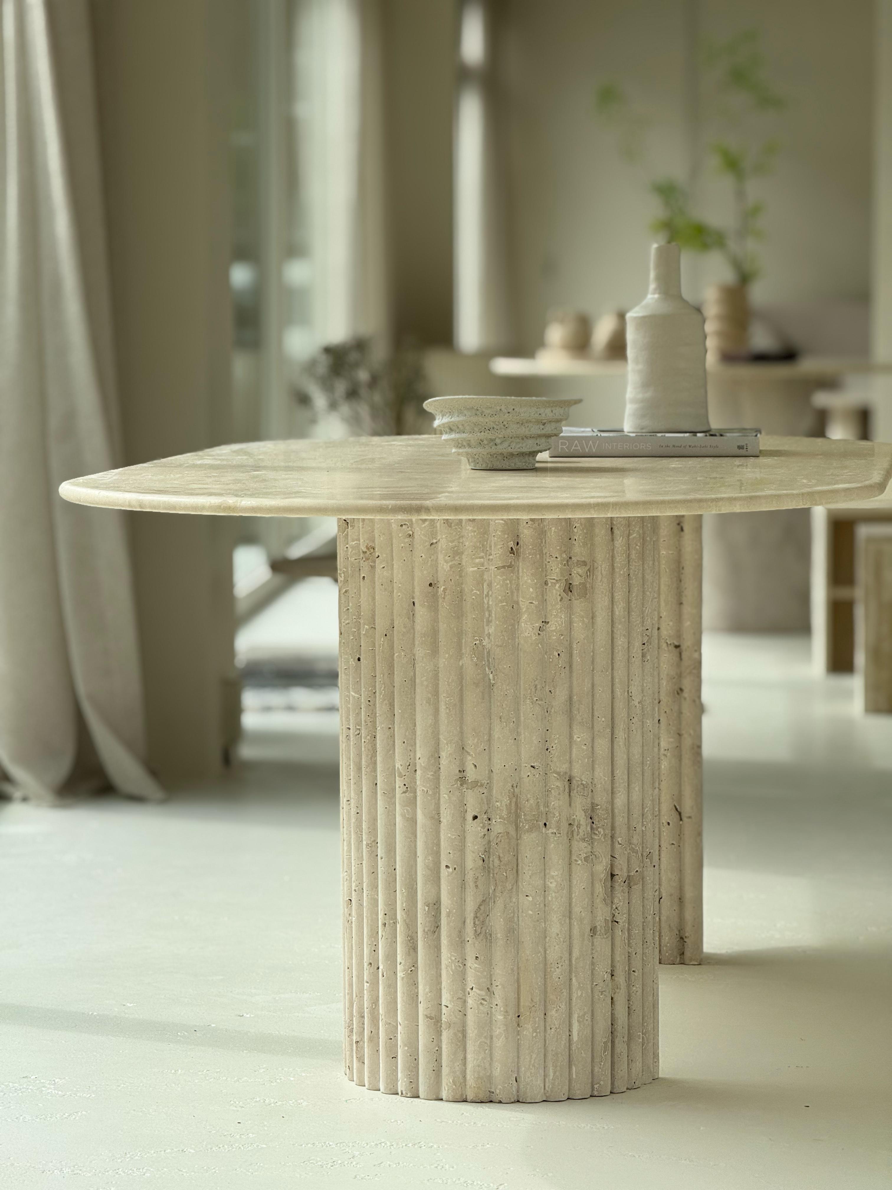 Willkommen bei unserer Travertin-Esstischkollektion bei Meraki Marble. Wir fertigen jeden Tisch aus...